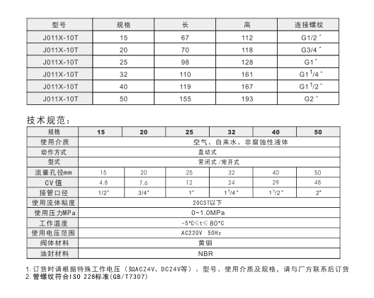 埃美柯黃銅絲口電磁閥參數: