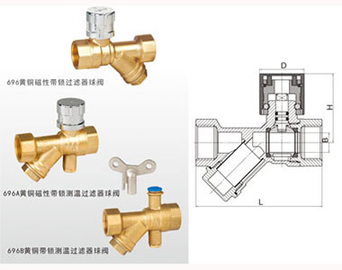 埃美柯黃銅磁性帶鎖(測溫)過濾器球閥696概述: