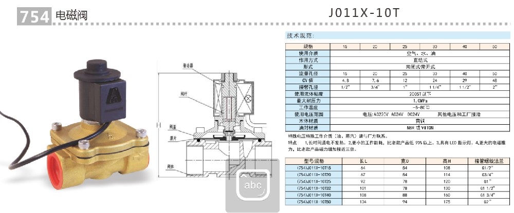 埃美柯(ke)758黃銅(tong)電磁閥技術參數: